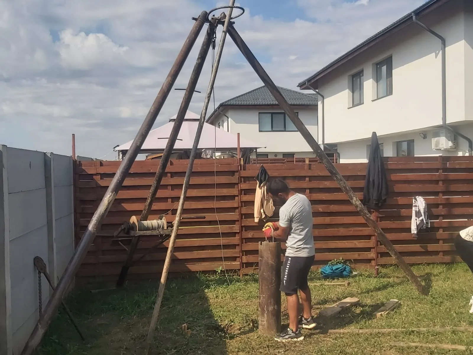 Forăm și limpezim puțul într-o singură zi. Deranj minim în curte.